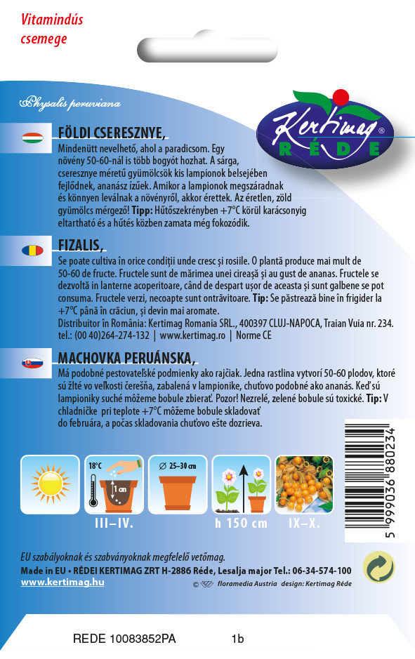 Mindenütt nevelhető, ahol a paradicsom. Egy növény 50-60-nál is több bogyót hozhat. A sárga, cseresznye méretű gyümölcsök kis lampionok belsejében fejlődnek, ananász ízűek. Aikor a lampionok megszáradnak és könnyen leválnak a növényről, akkor érettek. Az éretlen, zöld gyümölcs mérgező! Tipp: Hűtőszekrényben +7°C körül karácsonyig eltartható és a hűtés közben zamata még fokozódik.