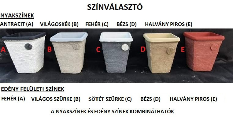 A termék alap színe: betonszürke. A kiválasztott szín utólagos festéssel kerül felhordásra.