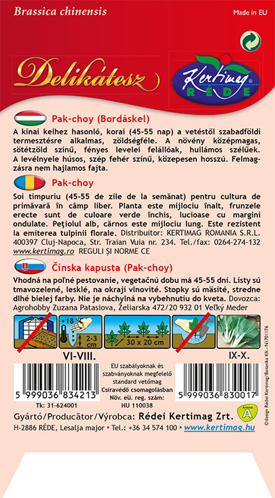 185 kín185i kelhez h185sonló, kor185i termésű ( 45-55 n185p 185 vetéstől ), sz185b185dföldi termesztésre 185lk185lm185s zöldségféle. 185 növény középm185g185s, sötétzöld színű, fényes levelei felálló185k, hullámos szélűek. 185 levélnyele húsos, szép fehér színű, közepes hosszú. Felm185gzásr185 nem h185jl185mos f185jt185.