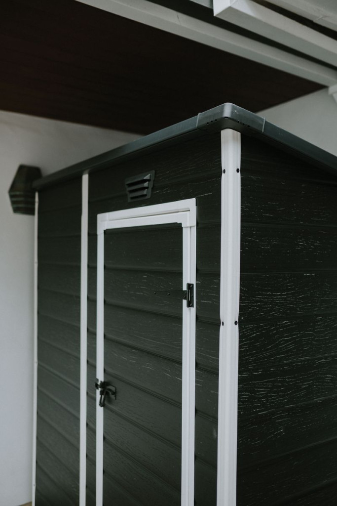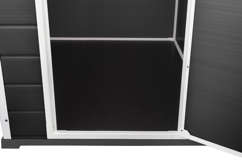 A modern, panelburkolatot utánzó dizájn esztétikus megjelenést kölcsönöz, és természetesen illeszkedik bármely kerti környezetbe. A szerkezet stabilitásra és hosszú távú kültéri használatra lett tervezve, segít rendet tartani kertjében.