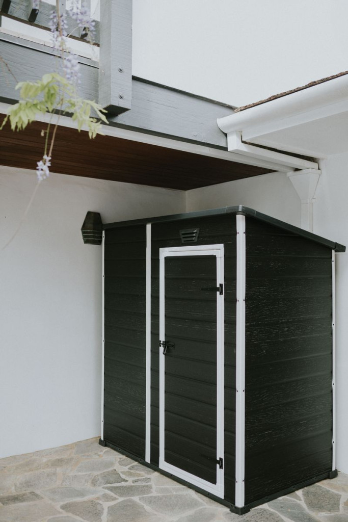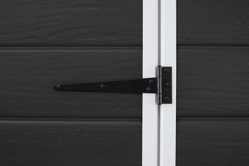 A 112 × 184 × 195 cm méretű ház elegendő helyet biztosít lapátok, gereblyék, kannák, kisebb fűnyírók és egyéb kerti felszerelések tárolására. A praktikus egyszárnyú ajtó egyszerű hozzáférést és kényelmes kezelést tesz lehetővé a tárolt tárgyakhoz.
