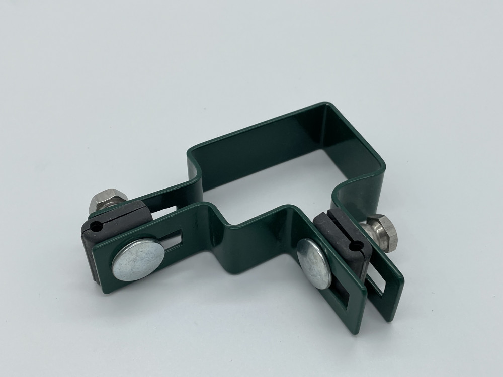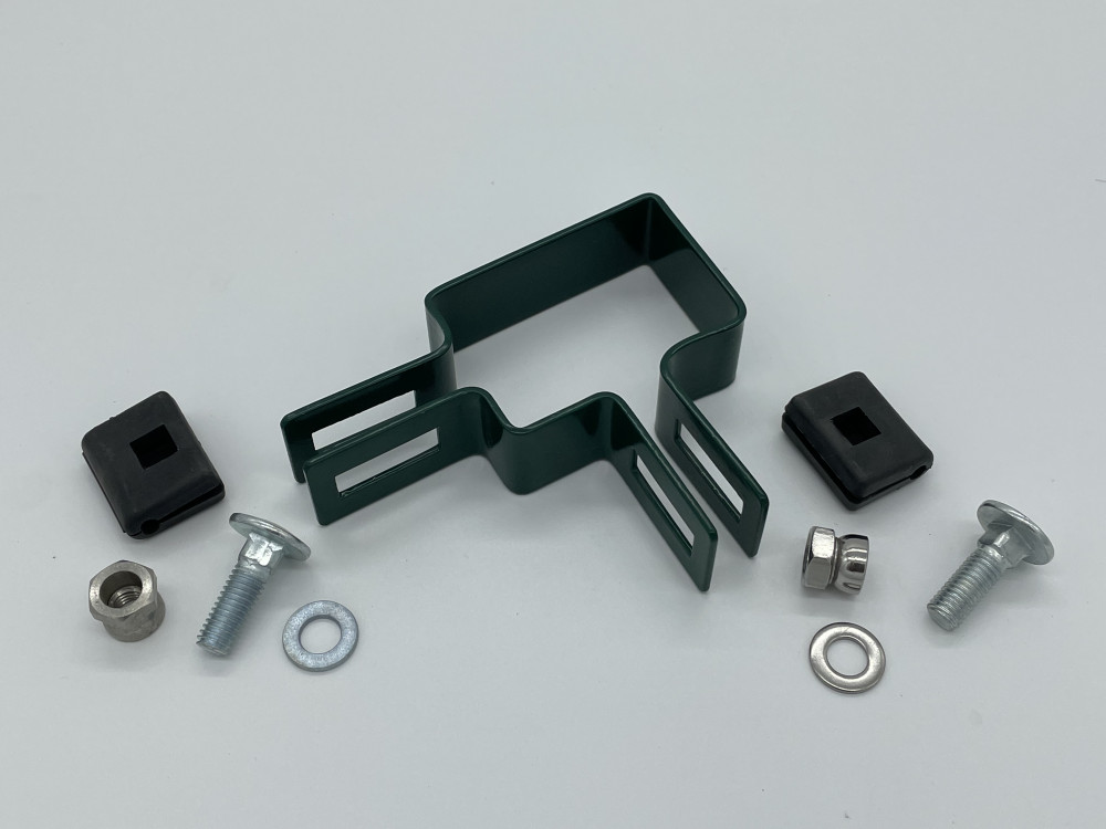 LEMEZES ÁTÖLELŐ BILINCS, MŰANYAG BETÉTTEL - 60X40 MM-ES OSZLOPOKHOZ / HORGANYZOTT VAGY PVC/ Sarok bilincs - PVC (zöld) (FEM211)