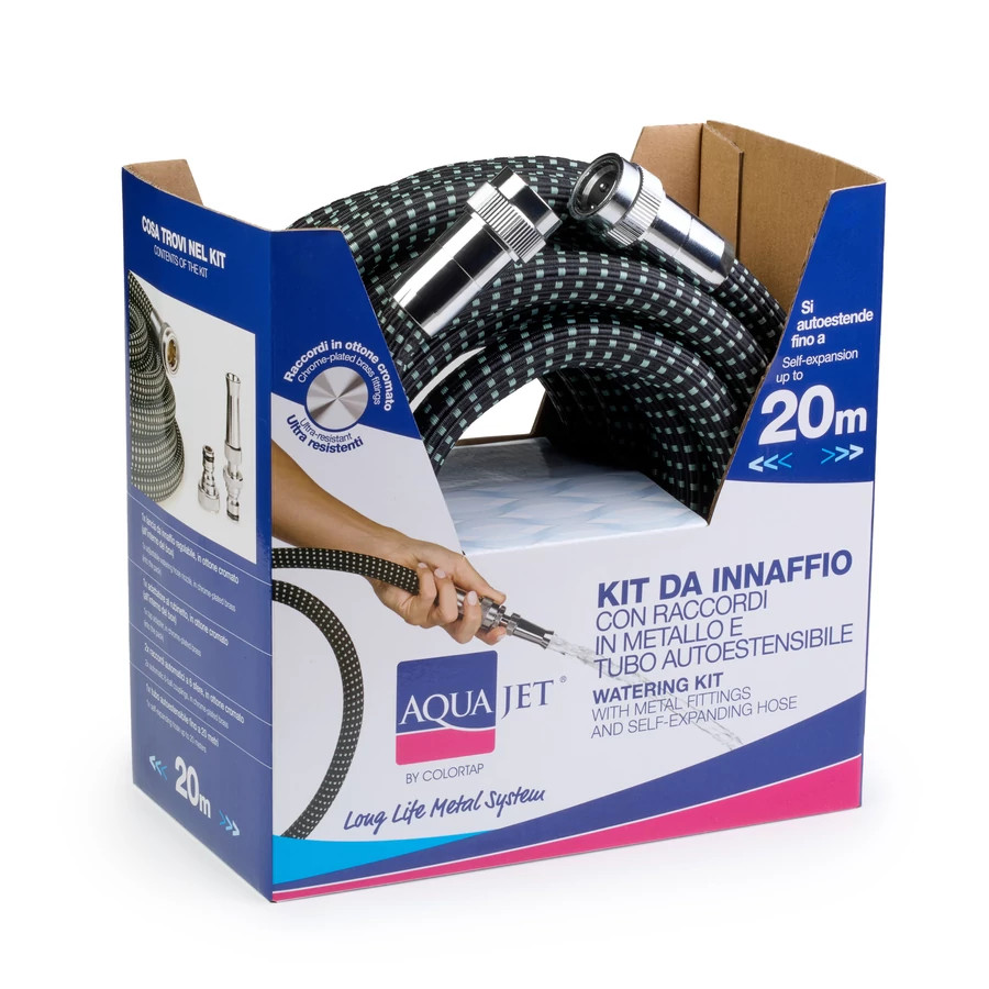 Locsolócső szett, 20 m, krómozott, réz szerelvényekkel