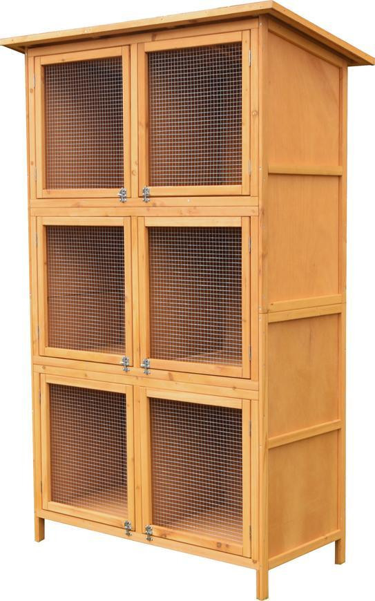 Nyúlketrec Strend Pro egy praktikus, több szintes fa ketrec, amely nyulak és más kisállatok tartására készült. Magasságának és több különálló boxra való felosztásának köszönhetően elegendő teret és átlátható szervezést biztosít a tartáshoz.