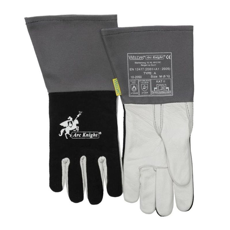 Zváracie rukavice Arc Knight® pre maximálmne pohodlie a použitie pre všetky typy zvárania. Čierna štiepaná a biela hrubá hovädzina.