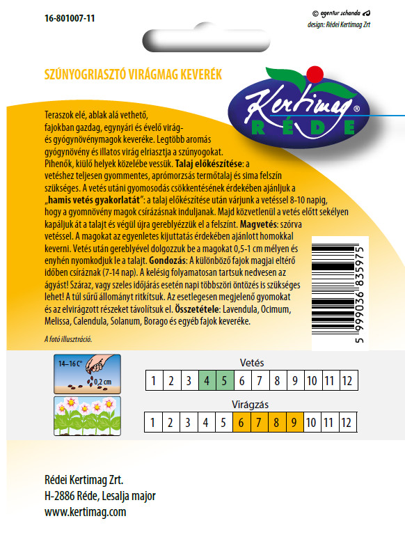 Teraszok elé, ablakok alá vethető, fajokban gazdag, egynyári és évelő virág és- gyógynövénymagok keveréke. A legtöbb aromás gyógynövény és illatos virág elriasztja a szúnyogokat. Pihenők, kiülőhelyek közelébe vessük.