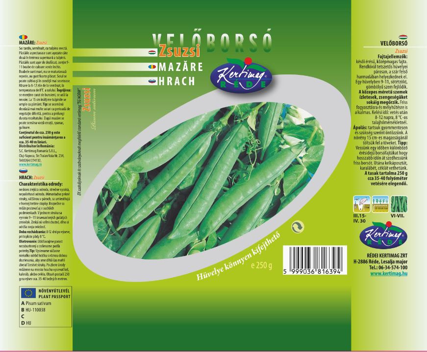 Bőtermő, igen nagyhüvelyű, nagy szemű velőborsó. Koncentráltan érő fajta. Friss fogyasztásra, és házi mélyhűtésre is alkalmas.