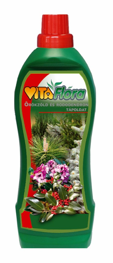 Az örökzöldeknek eredeti élőhelyükön a saját és egyébnövények lehulló lombja folyamatos tápanyagutánpótlást biztosít. Kertünkbenviszont nekünk kell gondoskodnunk táplálékukról. A nitrogén, foszfor és káliummellett kiemelkedő fontosságú a magnézium. Hiánya a gyenge növekedés mellett alevelek/tűlevelek sárga, illetve barna színéből ismerhető fel. Az elszíneződéskívülről befelé halad. A magnéziumhiány miatti barnulás megállítható, atápanyaggal jól ellátott növény képes regenerálódni és ismét fajtára jellemzőszínével díszlik. A Vitaflóra Örökzöld és rododendron tápoldat magasmagnéziumtartalma mellett minden egyéb tápanyagot is ideális összetételbenbiztosít az örökzöldeknek. A tápoldatot lombhullató sövények táplálására iseredményesen használhatjuk. A terméket alacsony sótartalom és savas kémhatásjellemzi, ami megfelel az örökzöldek savanyú talaj iránti igényének. Atápoldatot az öntözővízzel együtt juttatjuk ki, ezért csapadékszegényidőszakban is hatásos.
