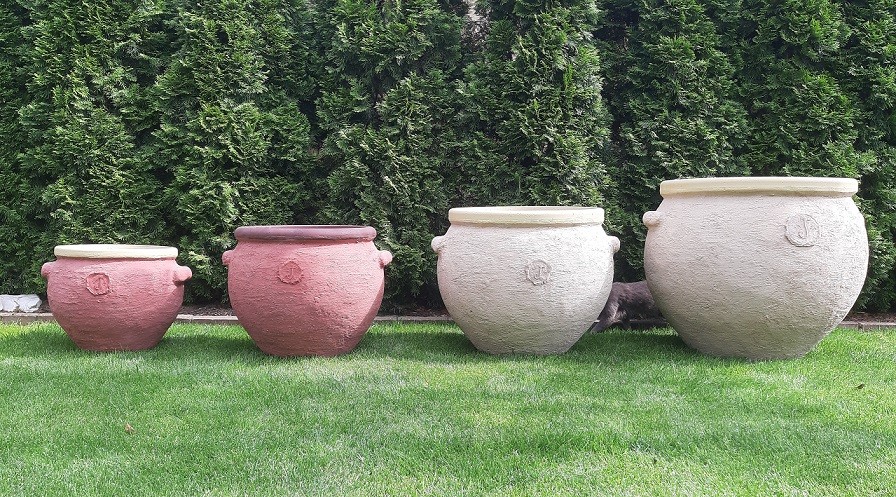 A nagyobb edények a kertet díszítő esővízgyűjtőnek is kiválóak.